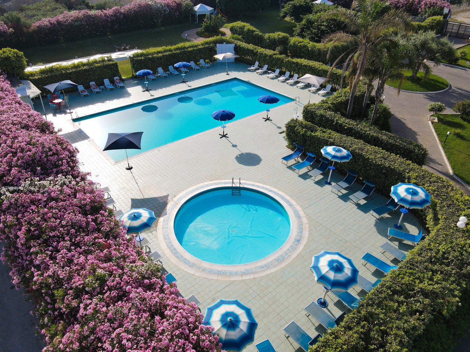 Hall con zona bar, reception, Wi-Fi aree comuni e in spiaggia, ascensore nel corpo centrale, due piscine di cui una per bambini, solarium attrezzato con ombrelloni e sdraio, area giochi per bambini, campo di calcetto in erba sintetica, campo da tennis, campo da bocce e campo beach volley in spiaggia. Parcheggio interno ed esterno non custodito.