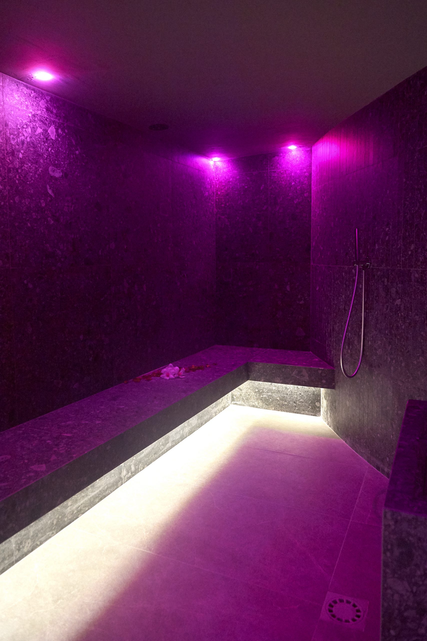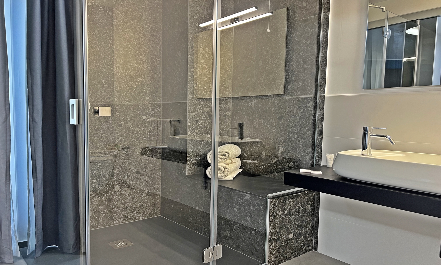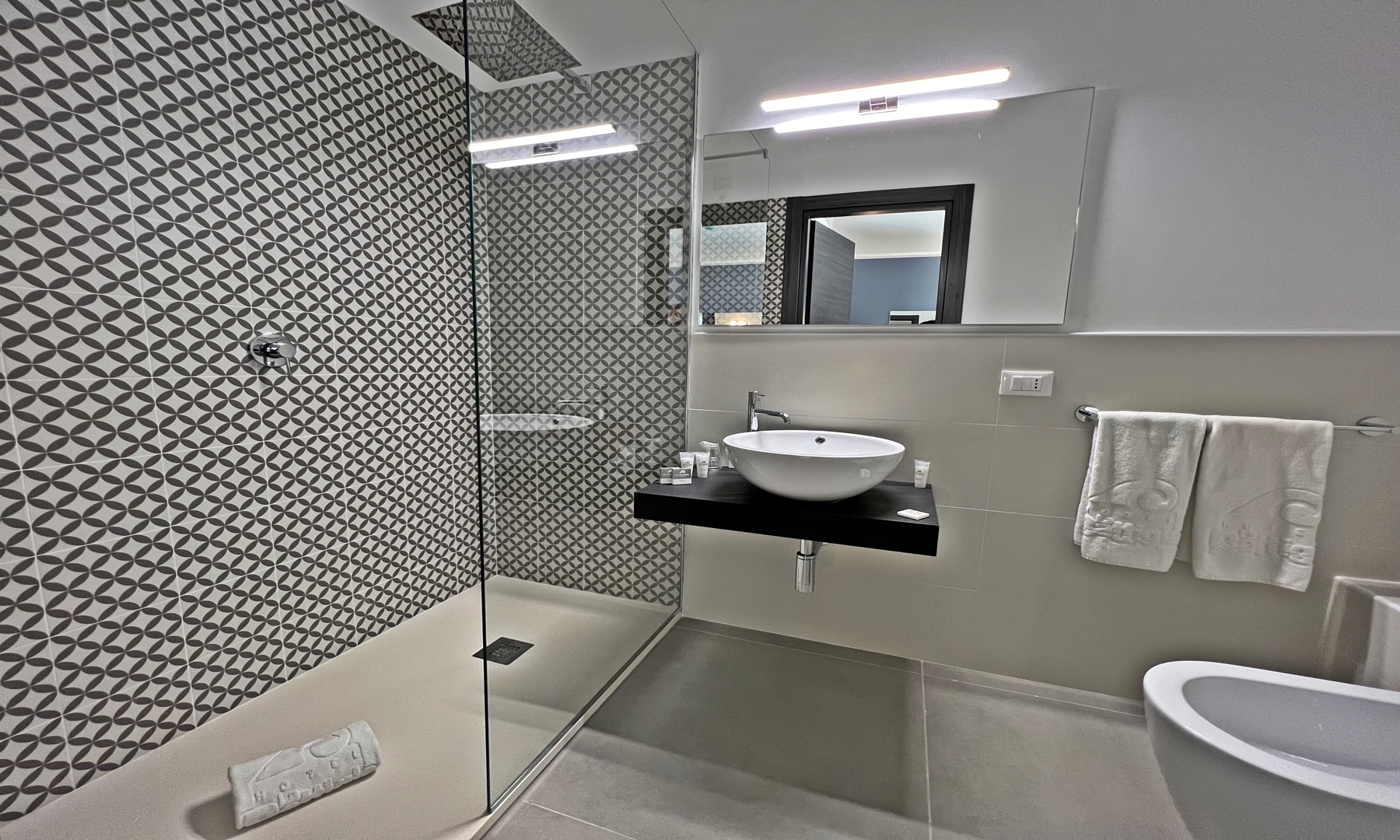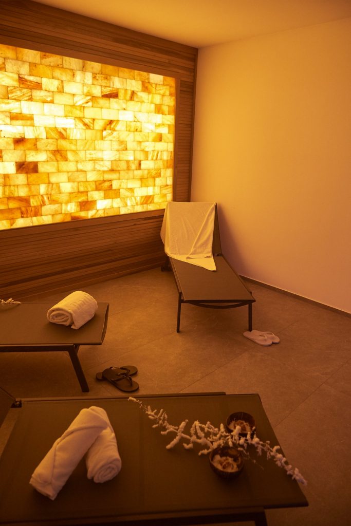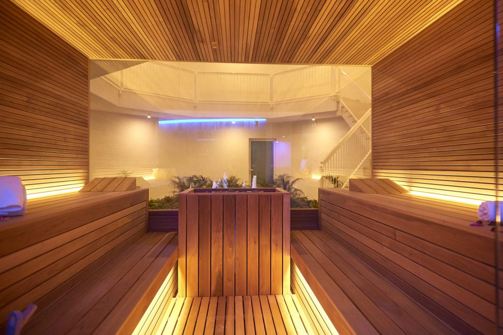 Il resort si struttura su quattro diversi livelli: la SPA al livello inferiore, il ristorante, il bar, la reception e le sale comuni a piano terra, quindi le camere e le suite fino alla terrazza panoramica, dove è ospitato il suggestivo sky-bar che sembra voler toccare il cielo e il mare con un dito.
